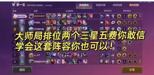 4、一般情况下再3-2升6级,4-1升7级,5-1升8级。玩法简析一定要连胜才能玩,过渡推荐用豹女三国天选+皇子+蜘蛛+提莫组成3三国2神盾2神射,2-5拉5,3-2拉6补3腥红。那么金铲铲之战九五阵容怎么摆呢?今天深空高玩为大家带来了阵容装备搭配攻略,想尝试这套的的小伙伴们可以参考一下。